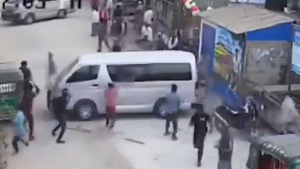 স্থানীয়দের হামলায় মাইক্রোবাস ফিরে আসার সময় ভাংচুর করতে দেখা যায়।